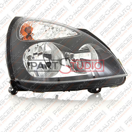 Pièce auto: phare droit h7+h1 electrique fond noir clio 06/01 - 12/03